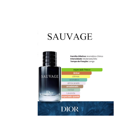 Sauvage de Dior (100ml) - es una fragancia Aromática Fougere para hombres. Sauvage se lanzó en 2015. La nariz detrás de esta fragancia es François Demachy. Las Notas de Salida son bergamota de Calabria y pimienta; las Notas de Corazón son pimienta de Sichuan, lavanda, pimienta rosa, vetiver, pachulí, geranio y elemí; las Notas de Fondo son Ambroxan, Cedro y Ládano.