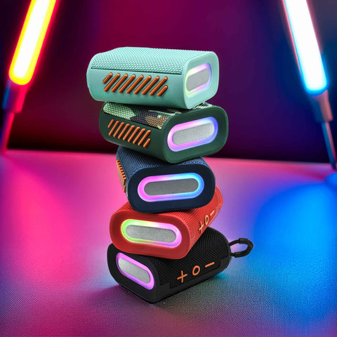 Este parlante está diseñado para resistir el día a día. Resistente al agua y al polvo, es perfecto para llevarlo a la piscina, la playa o durante tus paseos al aire libre. Gracias a su diseño compacto y ligero, puedes guardarlo fácilmente en tu bolso o mochila. Llévalo a todas partes sin preocupaciones.